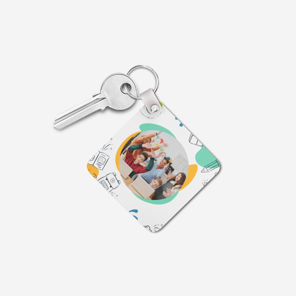 Produzido em acrílico resistente, este porta-chaves combina leveza e durabilidade. A personalização é feita por sublimação térmica nos dois lados, garantindo cores vivas e detalhes nítidos.